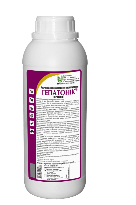 ГЕПАТОНІК комплексний стимулюючий препарат, дія якого спрямована на поліпшення метаболічних функцій організму у тварин та птиці. Підвищення резистентності, профілактику жирової дистрофії печінки. Покращення показників конверсії корму, загальних показників обміну речовин тощо.